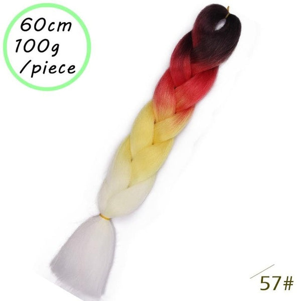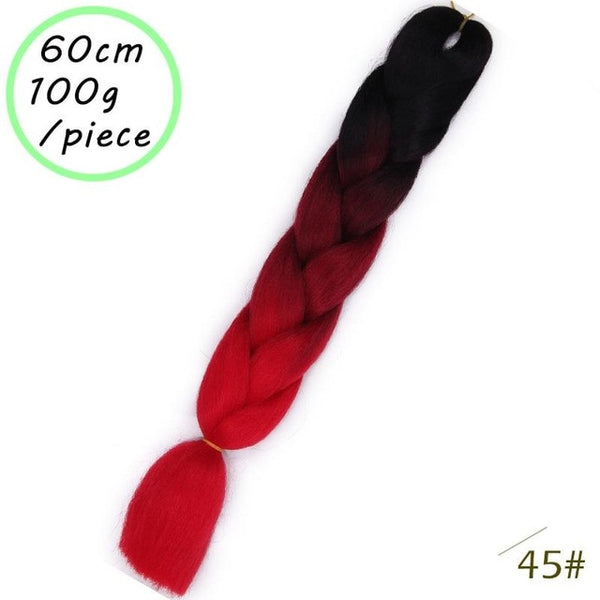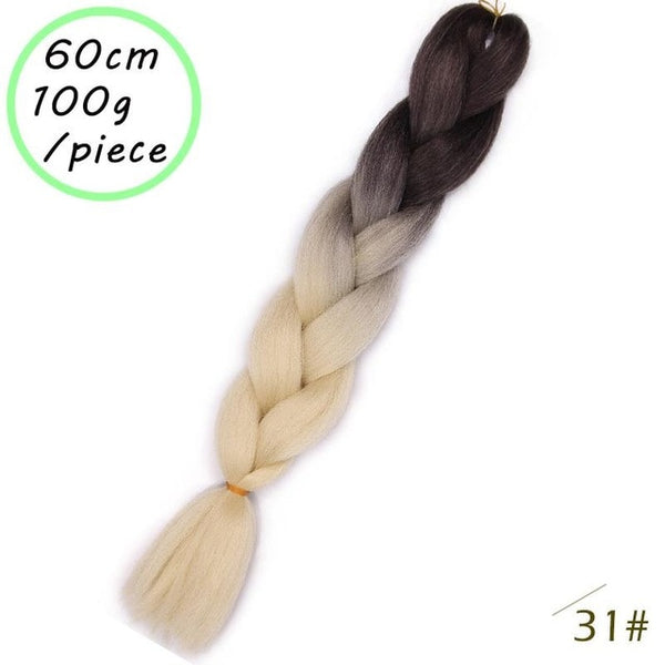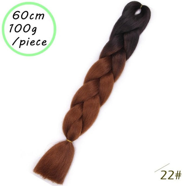 Brand Name: QUEEN BRAIDMaterial Grade: High Temperature FiberTexture: Jumbo BraidsItems per Package: 1strands/packCan Be Permed: NoColor Type: OmbreStyles: Jumbo BraidsLength: 24 inchesWeight: 100g